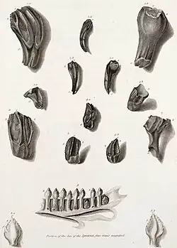 Gideon Algernon Mantell MRCS FRS (3 February 1790 – 10 November 1852) was an English obstetrician, geologist and palaeontologist. His attempts to reconstruct the structure and life of Iguanodon began the scientific study of dinosaurs: in 1822 he was responsible for the discovery (and the eventual identification) of the first fossil teeth, and later much of the skeleton, of Iguanodon. Mantell's work on the Cretaceous of southern England was also important.