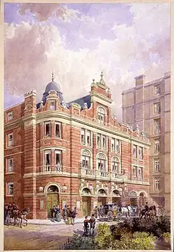 During the run of Patience, Carte built the large, modern Savoy Theatre, which became the partnership's permanent home. It was the first theatre (and the world's first public building) to be lit entirely by electric lighting.[56] Patience moved into the Savoy after six months at the Opera Comique and ran for a total of 578 performances, surpassing the run of H.M.S. Pinafore.[57]