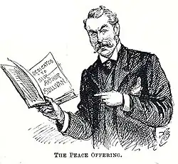 Though Gilbert and Sullivan's working relationship was mostly cordial and even friendly, it sometimes became strained, especially during their later operas, partly because each man saw himself as allowing his work to be subjugated to the other's, and partly caused by the opposing personalities of the two: Gilbert was often confrontational and notoriously thin-skinned (though prone to acts of extraordinary kindness), while Sullivan eschewed conflict.[93] Gilbert imbued his libretti with absurdist "topsy-turvy" situations in which the social order was turned upside down. After a time, these subjects were often at odds with Sullivan's desire for realism and emotional content.[94] Gilbert's political satire often poked fun at the wealthy and powerful whom Sullivan sought out for friendship and patronage.[95]