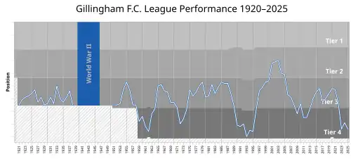 Gillingham Football Club is a professional association football club based in the town of Gillingham, Kent, England. The club's first team plays home matches at Priestfield Stadium and competes in League Two, the fourth tier of the English football league system, in the 2025–26 season.