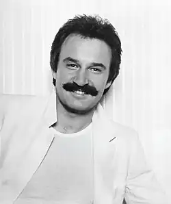 He began teaching himself to play the guitar, at age 15, inspired by Paul Anka's "Diana".[17] At age 18, he began touring Europe as a professional musician.[17] He performed at night, and during the day, made recordings with two Revox recorders.[17] Around age 25 he moved to his aunt's in Berlin, working as a sound engineer.[17] Ricky Shayne's single "Ich sprenge alle Ketten" ("I bust all the chains"), composed by then-unknowns Moroder and Michael Holm, became a German hit.[17] The second hit was Moroder's and Holm's cover of Sir Douglas Quintet's single, Mendocino.[17] After two years in Berlin, Moroder moved to Munich.[17]