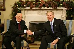 Giorgio Napolitano (Italian: [ˈdʒordʒo napoliˈtaːno]; 29 June 1925 – 22 September 2023) was an Italian politician who served as the eleventh President of Italy from 2006 to 2015. At the time the longest-serving president in Italian history and the first to achieve re-election,[1][2] he played a dominant role in Italian politics, leading some critics to refer to him as Re Giorgio ("King Giorgio").[3]