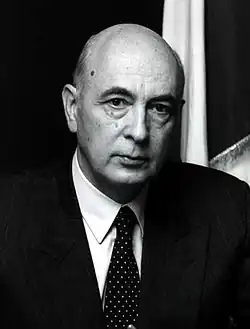 Napolitano was a longtime member of the Italian Communist Party, which he joined in 1945 after taking part in the Italian resistance movement, and of its post-Communist democratic socialist and social democratic successors, from the Democratic Party of the Left to the Democrats of the Left. He was a leading member of migliorismo, a reformist, moderate, and modernizing faction on the right-wing of the PCI,[4][5][6] which was inspired by the values of democratic socialism,[7] looked favourably to social democracy, and was interested in revisionist Marxism.[8] First elected to the Chamber of Deputies in 1953, he took an assiduous interest in parliamentary life and was president of the Chamber of Deputies from 1992 to 1994. He was Minister of the Interior from 1996 to 1998 during the first Prodi government.[9] A close friend of Henry Kissinger,[10] he was also the first high-ranking leader of a communist party to visit the United States, which he did in 1978.[9]