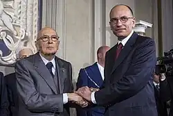 - ^ Virgo, Paul (24 April 2013). "Enrico Letta handed government mandate from Napolitano". La Gazzetta del Mezzogiorno.it. Retrieved 26 September 2023.