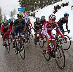 The fourteenth stage of the 1988 Giro d'Italia saw very poor weather, particularly on the slopes of the Passo di Gavia.[41] Franco Chioccioli led the race at the start of the fabled fourteenth stage.[42] On the slopes of the Gavia, Andrew Hampsten and Erik Breukink rode away from their fellow riders; Breukink won the stage, but Hampsten took the overall lead.[43] Hampsten went on to win the race and became the first non-European to win the race.[44]