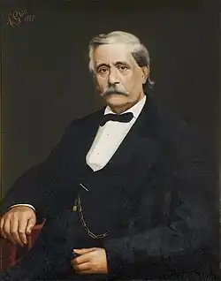 In 1859, Verdi was elected as a member of the new provincial council, and was appointed to head a group of five who would meet with King Vittorio Emanuele II in Turin. They were enthusiastically greeted along the way and in Turin Verdi himself received much of the publicity. On 17 October Verdi met with Cavour, the architect of the initial stages of Italian unification.[104] Later that year the government of Emilia was subsumed under the United Provinces of Central Italy, and Verdi's political life temporarily came to an end. Whilst still maintaining nationalist feelings, he declined in 1860 the office of provincial council member to which he had been elected in absentia.[105] Cavour however was anxious to convince a man of Verdi's stature that running for political office was essential to strengthening and securing Italy's future.[106] The composer confided to Piave some years later that "I accepted on the condition that after a few months I would resign."[107] Verdi was elected on 3 February 1861 for the town of Borgo San Donnino (Fidenza) to the Parliament of Piedmont-Sardinia in Turin (which from March 1861 became the Parliament of the Kingdom of Italy), but following the death of Cavour in 1861, which deeply distressed him, he scarcely attended.[108] Later, in 1874, Verdi was appointed a member of the Italian Senate, but did not participate in its activities.[109][110]