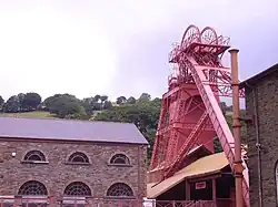 Industrial architecture tended to be functional, although some structures, such as the four-storey engine house at Cyfarthfa Ironworks (1836), were built to impress. Coal mining eventually became the dominant industry in Glamorgan and tall winding towers – originally made of timber or cast iron, later steel – became symbolic icons.[73]