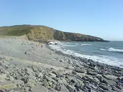 Archaeological evidence from two sites in Glamorgan shows Bronze Age practices and settlements continued into the Iron Age. Finds from Llyn Fawr, thought to be votive offerings, include weapons and tools from the Late Bronze Age and the Early Iron Age. The hoard, described as "one of the most significant prehistoric metalwork hoards in Wales" has given its name to the Llyn Fawr Phase, the last Bronze Age phase in Britain.[24][25] Excavations at Llanmaes, Vale of Glamorgan, indicate a settlement and "feasting site" occupied from the Late Bronze Age until the Roman occupation.[26][27] Until the Roman conquest of Britain, the area that would become known as Glamorgan was part of the territory of the Silures – a Celtic British tribe that flourished in the Iron Age – whose territory also included the areas that would become known as Breconshire and Monmouthshire.[5] The Silures had hill forts throughout the area – e.g., Caerau (Cardiff), Caerau hill fort, Rhiwsaeson (Llantrisant), and Y Bwlwarcau [Mynydd Margam], south west of Maesteg – and cliff castles along the Glamorgan coast – e.g., Burry Holms (Gower Peninsula). Excavations at one – Dunraven hill fort (Southerndown, Vale of Glamorgan) – revealed the remains of twenty-one roundhouses.[28][29][30][31][32][33]