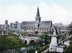 Glasgow itself was reputed to have been founded by the Christian missionary Saint Mungo in the 6th century. He established a church on the Molendinar Burn, where the present Glasgow Cathedral stands, and in the following years Glasgow became a religious centre. Glasgow grew over the following centuries as part of the Kingdom of Strathclyde and the Kingdom of Scotland. The Glasgow Fair reportedly began in 1190.[27] A bridge over the River Clyde was recorded from around 1285, where Victoria Bridge now stands. As the lowest bridging point on the Clyde it was an important crossing. The area around the bridge became known as Briggait. The founding of the University of Glasgow adjoining the cathedral in 1451 and elevation of the bishopric to become the Archdiocese of Glasgow in 1492 increased the town's religious and educational status and landed wealth. By the fifteenth century the urban area stretched from the area around the cathedral and university in the north down to the bridge and the banks of the Clyde in the south along High Street, Saltmarket and Bridgegate, crossing an east–west route at Glasgow Cross which became the commercial centre of the city.[28]
