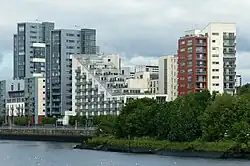 The city invested heavily in roads infrastructure, with an extensive system of arterial roads and motorways that bisected the central area. There are also accusations that the Scottish Office had deliberately attempted to undermine Glasgow's economic and politonald MacKintoshical influence in post-war Scotland by diverting inward investment in new industries to other regions during the Silicon Glen boom and creating the new towns of Cumbernauld, Glenrothes, Irvine, Livingston and East Kilbride, dispersed across the Scottish Lowlands to halve the city's population base.[68] By the late 1980s, there had been a significant resurgence in Glasgow's economic fortunes. The "Glasgow's miles better" campaign, launched in 1983, and opening of the Burrell Collection in 1983 and Scottish Exhibition and Conference Centre in 1985 facilitated Glasgow's new role as a European centre for business services and finance and promoted an increase in tourism and inward investment.[70] The latter continues to be bolstered by the legacy of the city's Glasgow Garden Festival in 1988, its status as European Capital of Culture in 1990,[71] and concerted attempts to diversify the city's economy.[72] However, it is the industrial heritage that serves as key tourism enabler.[73] Wider economic revival has persisted and the ongoing regeneration of inner-city areas, including the large-scale Clyde Waterfront Regeneration, has led to more affluent people moving back to live in the centre of Glasgow, fuelling allegations of gentrification.[74] In 2008, the city was listed by Lonely Planet as one of the world's top 10 tourist cities.[75]