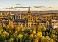 The burgh was substantially enlarged in 1891 to take in areas from both Lanarkshire and Renfrewshire where the urban area had grown beyond the old burgh boundary.[98] In 1893, the burgh became its own county for lieutenancy and judicial purposes too, being made a county of itself.[99] From 1975 to 1996 the city was part of Strathclyde Region, with the city's council becoming a lower-tier district council. Strathclyde was abolished in 1996, since when the city has again been responsible for all aspects of local government, being one of the 32 council areas in Scotland.[100]