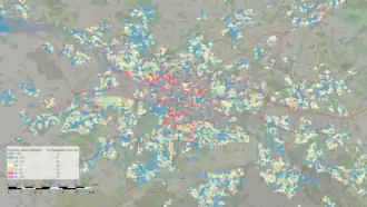 In the 2011 Scottish Parliament election, the boundaries of the Glasgow region were redrawn.[88] In the Scottish independence referendum, Glasgow voted "Yes" by a margin of 53.5% to 46.5%.[89] In the Brexit referendum, results varied from constituency to constituency. Glasgow North recorded the biggest remain vote with 78% opting to stay in the EU whilst in Glasgow East this figure dropped to 56%.[90] The city as a whole voted to remain in the EU, by 66.6% to 33.3%.[91] Following the 2014 Scottish independence referendum, in which 53.49% of the electorate of Glasgow voted in favour of Scottish independence; the SNP won every seat in the city at the 2015 general election, including a record-breaking 39.3% swing from Labour to SNP in the Glasgow North East constituency.[92] At the 2017 snap general election, Glasgow was represented by 6 Scottish National Party MPs and 1 Labour MP; the Glasgow North East constituency which had a record 39.3% swing from Labour to SNP at the previous general election, was regained by Paul Sweeney of the Scottish Labour Party, who narrowly defeated sitting SNP MP Anne McLaughlin by 242 votes.[93][94]