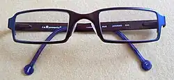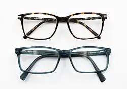 The ophthalmic frame is the part of a pair of glasses that is designed to hold the lenses in the proper position. Ophthalmic frames come in a variety of styles, sizes, materials, shapes, and colors.[23]