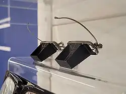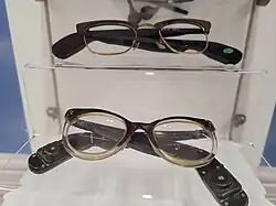1940s combined hearing aid glasses, on display at Thackray Museum of Medicine.[2]