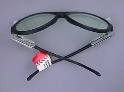 Safety glasses are worn to protect the eyes in various situations. They are made with break-proof plastic lenses to protect the eye from flying debris or other matter.[4] Construction workers, factory workers, machinists and lab technicians are often required to wear safety glasses to shield the eyes from flying debris or hazardous splatters such as blood or chemicals.[5] As of 2017, dentists and surgeons in Canada and other countries are required to wear safety glasses to protect against infection from patients' blood or other body fluids. There are also safety glasses for welding, which are styled like wraparound sunglasses, but with much darker lenses, for use in welding where a full-sized welding helmet is inconvenient or uncomfortable. These are often called "flash goggles" because they provide protection from welding flash.[6] Nylon frames are usually used for protective eyewear for sports because of their lightweight and flexible properties. Unlike most regular glasses, safety glasses often include protection beside the eyes as well as in front of the eyes.