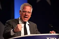 A collection of progressives whom Beck has called "Crime Inc." make up what he contends is a clandestine conspiracy to take over and transform the United States.[119][120][121] Some of these include Cass Sunstein, Van Jones, Andy Stern, John Podesta, Wade Rathke, Joel Rogers and Francis Fox Piven.[119][122] Other figures Beck has tied to "Crime Inc." include Al Gore, Franklin Raines,[123] Maurice Strong, George Soros,[124] John Holdren and Barack Obama.[120] According to Beck, these people already have or are surreptitiously working to fulfill their agenda with an array of organizations and corporations such as Goldman Sachs, Fannie Mae, ACORN, Apollo Alliance, Tides Center, Chicago Climate Exchange, Generation Investment Management, Enterprise Community Partners, Petrobras, Center for American Progress, and the SEIU.[120][124] In his quest to root out these "progressives", Beck has compared himself to Israeli Nazi hunters, vowing on his radio show that "to the day I die I am going to be a progressive-hunter. I'm going to find these people that have done this to our country and expose them. I don't care if they're in nursing homes."[31] Beck compared Al Gore to the Nazis while equating the campaign against global warming to the Nazi campaign against the Jews.[125]