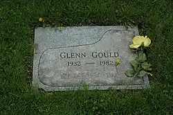 On 27 September 1982, two days after his 50th birthday, after experiencing a severe headache, Gould had a stroke that paralyzed the left side of his body. He was admitted to Toronto General Hospital and his condition rapidly deteriorated. By 4 October, there was evidence of brain damage, and Gould's father decided that his son should be taken off life support.[82] Gould's public funeral was held in St. Paul's Anglican Church on 15 October with singing by Lois Marshall and Maureen Forrester. The service was attended by over 3,000 people and was broadcast on the Canadian Broadcasting Corporation. He is buried next to his parents in Toronto's Mount Pleasant Cemetery (section 38, lot 1050).[83] The first few bars of the Goldberg Variations are carved on his grave marker.[84] An animal lover, Gould left half his estate to the Toronto Humane Society; the other half went to the Salvation Army.[85]