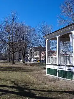 A post office was established in 1808.[6] Glens Falls became an incorporated village in 1839,[6] and was re-incorporated in 1874 and 1887, expanding the village to what would become the city limits[9] when the state legislature granted the city charter in 1908,[9] at which time the city became independent from the town of Queensbury.