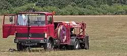 The two most common methods of launching sailplanes are by aerotow and by winch.[11] When aerotowed, the sailplane is towed behind a powered aircraft using a rope about 60 metres (200 ft) long. The sailplane pilot releases the rope after reaching the desired altitude. However, the rope can be released by the towplane also in case of emergency. Winch launching uses a powerful stationary engine located on the ground at the far end of the launch area. The sailplane is attached to one end of 800 to 1,200 metres (2,600 to 3,900 ft) of cable, and the winch rapidly winds it in. The sailplane can gain about 270 to 910 metres (900 to 3,000 ft) of height with a winch launch, depending on the headwind. Less often, automobiles are used to pull sailplanes into the air, either by pulling them directly or through the use of a reverse pulley in a similar manner to the winch launch. Elastic ropes (known as bungees) are occasionally used at some sites to launch gliders from slopes if there is sufficient wind blowing up the hill. Bungee launching was the predominant method of launching early gliders. Some modern gliders can self-launch by using retractable engines or just retractable propellers (see motor glider). These engines can use internal combustion or battery power.[12]