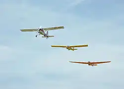 A glider or sailplane is a type of glider aircraft used in the leisure activity and sport of gliding (also called soaring).[1][2] This unpowered aircraft can use naturally occurring currents of rising air in the atmosphere to gain altitude. Sailplanes are aerodynamically streamlined, so they can fly a significant distance forward for a small decrease in altitude.