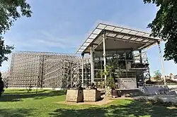 During the war, the Germans operated a Dulag transit camp for Polish prisoners of war,[22] and a Nazi prison in the city,[23] and established numerous forced labour camps,[7] including a Polenlager camp solely for Poles,[24] a camp solely for Jews,[25] a penal "education" camp,[26] a subcamp of the prison in Strzelce Opolskie,[27] and six subcamps of the Stalag VIII-B/344 prisoner of war camp.[28] In October 1943, the Germans brought a large transport of Italian POWs to a forced labour camp in today's Łabędy district.[29] From July 1944 to January 1945, Gliwice was the location of four subcamps of the Auschwitz concentration camp.[30] In the largest subcamp, whose prisoners were mainly Poles, Jews and Russians, nearly 100 either died of hunger, mistreatment and exhaustion or were murdered.[31] During the evacuation of another subcamp, the Germans burned alive or shot 55 prisoners who were unable to walk.[32] There are two mass graves of the victims of the early 1945 death march from Auschwitz in the city, both commemorated with monuments.[33]