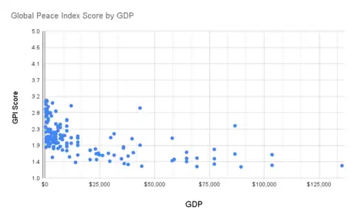Note: The GPI's methodology is updated regularly and is improved to reflect the most up-to-date datasets. Each year's GPI report includes a detailed description of the methodology used. Also, the data is revised periodically and so values from previous years may change accordingly.