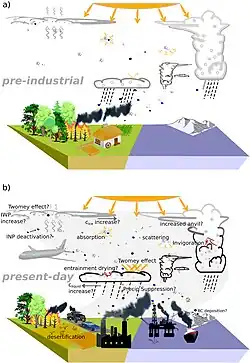 - ^ a b c Myhre, Gunnar; Lund Myhre, Cathrine E.; Samset, Bjorn H.; Storelvmo, Trude (2013). "Aerosols and their Relation to Global Climate and Climate Sensitivity". The Nature Education Knowledge Project. Retrieved 6 January 2024.