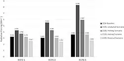 Regardless of the current strength of aerosol cooling, all future climate change scenarios project decreases in particulates and this includes the scenarios where 1.5 °C (2.7 °F) and 2 °C (3.6 °F) targets are met: their specific emission reduction targets assume the need to make up for lower dimming.[15] Since models estimate that the cooling caused by sulfates is largely equivalent to the warming caused by atmospheric methane (and since methane is a relatively short-lived greenhouse gas), it is believed that simultaneous reductions in both would effectively cancel each other out.[95] [96] Yet, in the recent years, methane concentrations had been increasing at rates exceeding their previous period of peak growth in the 1980s,[97][98] with wetland methane emissions driving much of the recent growth,[99][100] while air pollution is getting cleaned up aggressively.[62] These trends are some of the main reasons why 1.5 °C (2.7 °F) warming is now expected around 2030, as opposed to the mid-2010s estimates where it would not occur until 2040.[16]