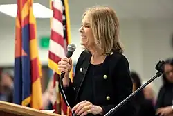 Steinem spoke at the 1977 National Women's Conference among other speakers, including Rosalynn Carter, Betty Ford, Lady Bird Johnson, Bella Abzug, Barbara Jordan, Cecilia Burciaga, Lenore Hershey, and Jean O'Leary.[50]