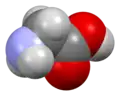 Glycine functions as a bidentate ligand for many metal ions, forming amino acid complexes.[37] A typical complex is Cu(glycinate)2, i.e. Cu(H2NCH2CO2)2, which exists both in cis and trans isomers.[38][39]