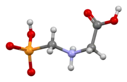 Glyphosate (IUPAC name: N-(phosphonomethyl)glycine) is a broad-spectrum systemic herbicide and crop desiccant. It is an organophosphorus compound, specifically a phosphonate, which acts by inhibiting the plant enzyme 5-enolpyruvylshikimate-3-phosphate synthase (EPSP). Glyphosate-based herbicides (GBHs) are used to kill weeds, especially annual broadleaf weeds and grasses that compete with crops. American agricultural company Monsanto brought it to market for agricultural use in 1974 under the trade name Roundup. Monsanto's last commercially relevant United States patent expired in 2000.