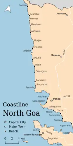 - ^ "54 Beaches - List Of Beaches In Goa". goaholidayguide.com. Retrieved 15 August 2025.