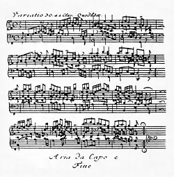 At the end of the thirty variations, Bach writes Aria da Capo e fine, meaning that the performer is to return to the beginning ("da capo") and play the aria again before concluding.