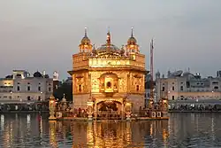 The Golden Temple[a] is a gurdwara located in Amritsar, Punjab, India.[3][4] It is the pre-eminent spiritual site of Sikhism and is one of its holiest sites, alongside the Gurdwara Darbar Sahib in Kartarpur and the Gurdwara Janam Asthan in Nankana Sahib, both in Punjab, Pakistan.[3][5]