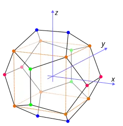 The golden ratio features prominently in geometry. For example, it is intrinsically involved in the internal symmetry of the pentagon, and extends to form part of the coordinates of the vertices of a regular dodecahedron, as well as those of a regular icosahedron.[46] It features in the Kepler triangle and Penrose tilings too, as well as in various other polytopes.