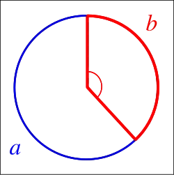 When two angles that make a full circle have measures in the golden ratio, the smaller is called the golden angle, with measure :
