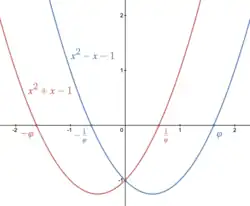 Because is a ratio between positive quantities, is necessarily the positive root.[10] The negative root is in fact the negative inverse , which shares many properties with the golden ratio.