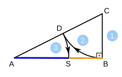 - Draw an arc with center and radius . This arc intersects the hypotenuse at point .