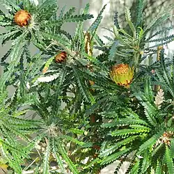 The adjective "Gondwanan" is in common use in biogeography when referring to patterns of distribution of living organisms, typically when the organisms are restricted to two or more of the now-discontinuous regions that were once part of Gondwana, including the Antarctic flora.[9] For example, the plant family Proteaceae, known from all continents in the Southern Hemisphere, has a "Gondwanan distribution" and is often described as an archaic, or relict, lineage. The distributions in the Proteaceae is, nevertheless, the result of both Gondwanan rafting and later oceanic dispersal.[64]
