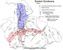 - Meert, J. G. (2003). "A synopsis of events related to the assembly of eastern Gondwana". Tectonophysics. 362 (1): 1–40. Bibcode:2003Tectp.362....1M. doi:10.1016/S0040-1951(02)00629-7.