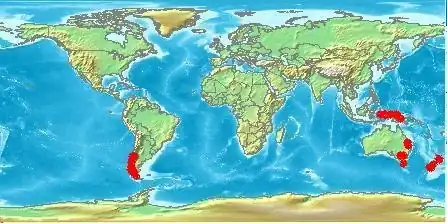 The 18,000 km-long (11,000 mi) Terra Australis Orogen developed along Gondwana's western, southern, and eastern margins.[19] Proto-Gondwanan Cambrian arc belts from this margin have been found in eastern Australia, Tasmania, New Zealand, and Antarctica. Though these belts formed a continuous arc chain, the direction of subduction was different between the Australian-Tasmanian and New Zealand-Antarctica arc segments.[20]