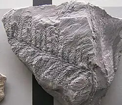 West Gondwana drifted north during the Devonian, bringing Gondwana and Laurasia close together. Global cooling contributed to the Late Devonian extinction (19% of marine families and 50% of genera went extinct) and glaciation occurred in South America. Before Pangaea had formed, terrestrial plants, such as pteridophytes, began to diversify rapidly resulting in the colonisation of Gondwana. The Baragwanathia Flora, found only in the Yea Beds of Victoria, Australia, occurs in two strata separated by 1,700 m (5,600 ft) or 30 Ma; the upper assemblage is more diverse and includes Baragwanathia, the first primitive herbaceous lycopod to evolve from the zosterophylls. During the Devonian, giant club mosses replaced the Baragwanathia Flora, introducing the first trees, and by the Late Devonian this first forest was accompanied by the progymnosperms, including the first large trees Archaeopteris.[68] The Late Devonian extinction probably also resulted in osteolepiform fishes evolving into the amphibian tetrapods, the earliest land vertebrates, in Greenland and Russia. The only traces of this evolution in Gondwana are amphibian footprints and a single jaw from Australia.[69]
