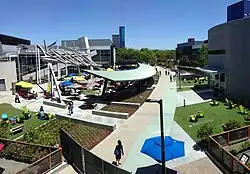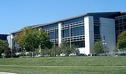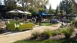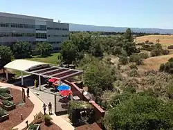 The site was previously occupied by Silicon Graphics (SGI). The office space and corporate campus is located within a larger 26-acre (11-hectare) site that contains Charleston Park, a 5-acre (2-hectare) public park; improved access to Permanente Creek; and public roads that connect the corporate site to Shoreline Park and the Bay Trail. The project, launched in 1994, was built on the site of one of the few working farms in the area and was city owned at the time (identified as "Farmer's Field" in the planning documents).[1][2] It was a creative collaboration between SGI, StUDIOS Architecture, SWA Group, and the Planning and Community Development Agency of the City of Mountain View, California. The objective was to develop in complementary fashion the privately owned corporate headquarters and adjoining public greenspace. Key design decisions placed parking for nearly 2000 cars underground, enabling SWA to integrate the two open spaces with water features, shallow pools, fountains, pathways, and plazas. The project was completed in 1997. The American Society of Landscape Architects (ASLA) noted that the SGI project was a significant departure from typical corporate campuses and which challenged conventional thinking about private and public space, and awarded the project the ASLA Centennial Medallion in 1999.[3]