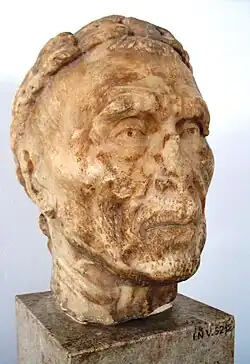 - ^ The traditional identification of this portrait as Gordian I is uncertain; if correct, it was probably created about a decade before his accession to the throne. See K. Fittschen & P. Zanker (1985). Katalog der römischen Porträts in den Capitolinischen Museen und den anderen kommunalen Sammlungen der Stadt Rom I: Kaiser- und Prinzenbildnisse, Mainz: Philipp von Zabern, pp. 123–124, no. 104, for a summary of opinions on the date and identification.