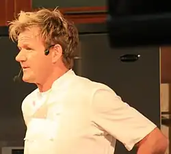In May 2005, the Fox network introduced Ramsay to American audiences in an American version of Hell's Kitchen produced by Granada Entertainment and A. Smith & Co. The show follows a similar premise to the original British series, showcasing Ramsay's perfectionism and infamously short temper. Ramsay had also hosted an American version of Kitchen Nightmares, which premiered on Fox on 19 September 2007. On 23 June 2014, Ramsay announced he was ending the series.[90] In June 2018, Gordon Ramsay's 24 Hours to Hell and Back, a new series with a premise much like Kitchen Nightmares but a shorter timeline, premiered on Fox.[91]