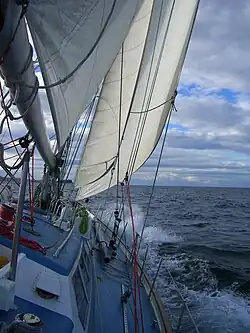 Seamanship has been a main part of the curriculum since the school began. The first voyage of note was in a cutter from Hopeman to Dornoch in June 1935, a distance of 25 miles (40 km).[60] Pupils still train in cutters from the age of 13 upward at Hopeman Harbour to prepare for a voyage in the school's 80 ft (24 m) sailing vessel. Most excursions take a week sailing off the West Coast of Scotland, but the school also enters into the Tall Ships' Races annually which allows pupils to take part in an international competition in European waters lasting up to a month.[61]