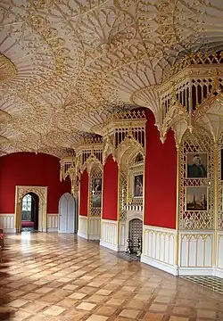 Strawberry Hill House, Twickenham, London; 1749 by Horace Walpole (1717–1797). "The seminal house of the Gothic Revival in England", it established the "Strawberry Hill Gothic" style[23]