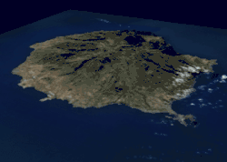 About 80% of the volume of the island was formed during the Miocene period eruptions, between 14 and 9 million years ago.[13] This is called the "Old Cycle" and is estimated to have lasted some 200,000 years and have emitted about 1,000 km3 (240 cu mi), mostly of fissural alkali basalt. This cycle continued with the emission of trachytes, phonolites and peralkaline rocks.[14] This period was followed by one of erosion, which lasted some 4 million years.[15]