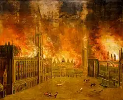 On 13 August 1695, during the Nine Years' War, a 70,000-strong French army under Marshal François de Neufville, duc de Villeroy, began a bombardment of Brussels in an effort to draw the League of Augsburg's forces away from their siege on French-held Namur in what is now Wallonia. The French launched a massive bombardment of the mostly defenceless city centre with cannons and mortars, setting it on fire and flattening the majority of the Grand-Place and the surrounding city. Only the stone shell of the Town Hall and a few fragments of other buildings remained standing.[22][43] That the Town Hall survived at all is ironic, as it was the principal target of the artillery fire.[3]