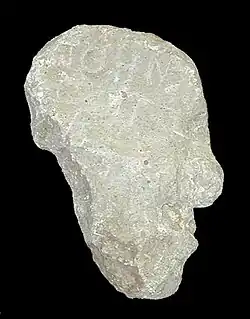 The Lewis and Clark Expedition (1804–1806) passed well north of the Grand Teton region. During their return trip from the Pacific Ocean, expedition member John Colter was given an early discharge so he could join two fur trappers who were heading west in search of beaver pelts. Colter was later hired by Manuel Lisa to lead fur trappers and explore the region around the Yellowstone River. During the winter of 1807/08, Colter passed through Jackson Hole and was the first Caucasian to see the Teton Range.[11] Lewis and Clark expedition co-leader William Clark produced a map based on the previous expedition and included the explorations of John Colter in 1807, apparently based on discussions between Clark and Colter when the two met in St. Louis, Missouri in 1810.[12] Another map attributed to William Clark indicates John Colter entered Jackson Hole from the northeast, crossing the Continental Divide at either Togwotee Pass or Union Pass and left the region after crossing Teton Pass, following the well established Native American trails.[13] In 1931, the Colter Stone, a rock carved in the shape of a head with the inscription "John Colter" on one side and the year "1808" on the other, was discovered in a field in Tetonia, Idaho, which is west of Teton Pass. The Colter Stone has not been authenticated to have been created by John Colter and may have been the work of later expeditions to the region.[13]